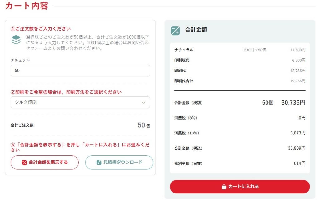 そんなときは商品ページから見積り計算機能をご活用ください。